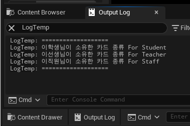 UE_LOG(LogTemp, Log, TEXT("%s님이 소유한 카드 종류 %s"), *Person->GetName(), *CardMetaData);
